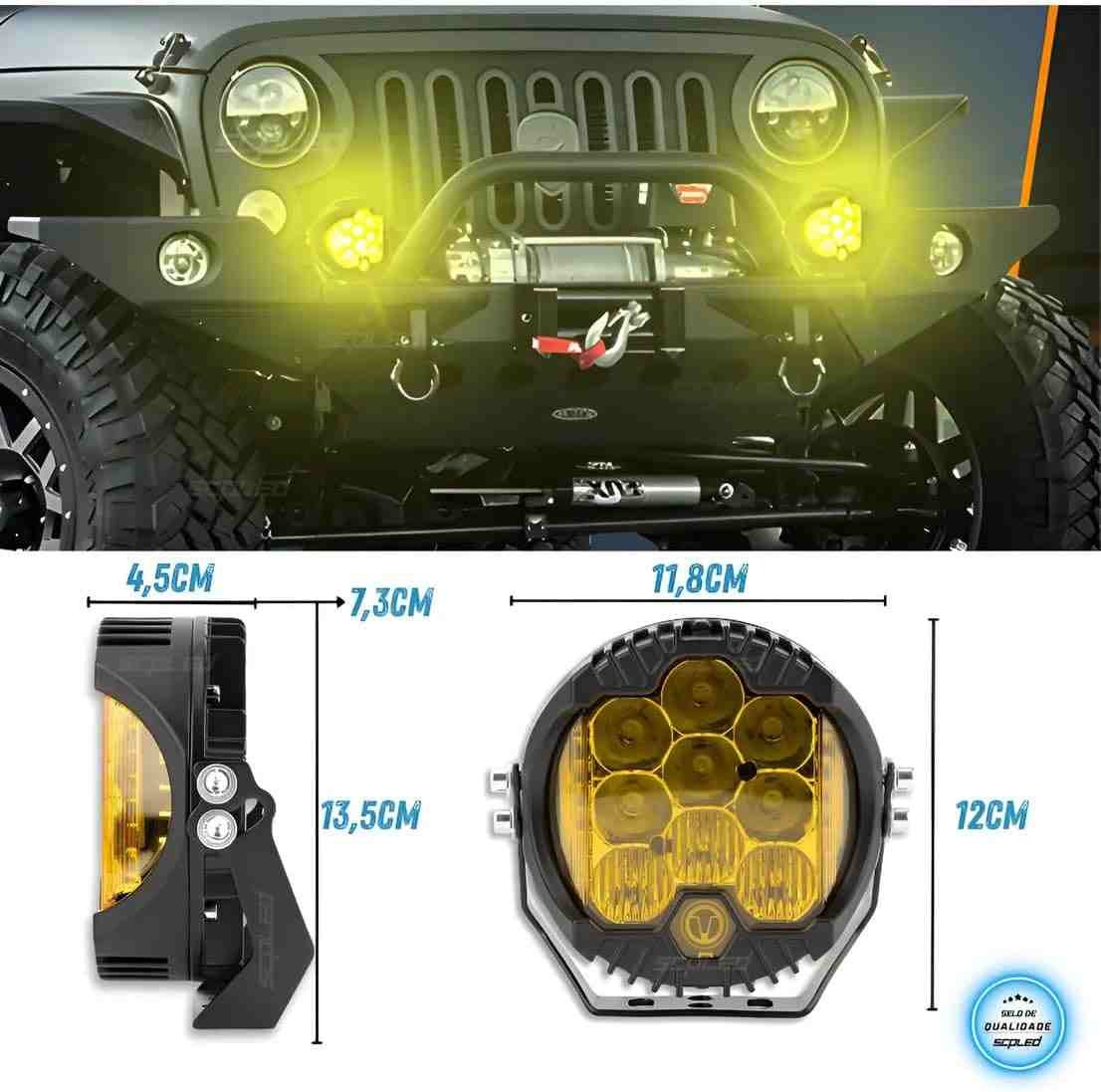 Esse modelo de farol de milha com DRL amarelo é perfeito para quem roda em regiões com neblina, chuva intensa ou poeira. A cor amarela ajuda a cortar a neblina, diminuindo o reflexo e aumentando a nitidez da visão.